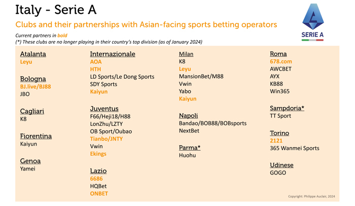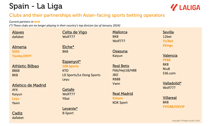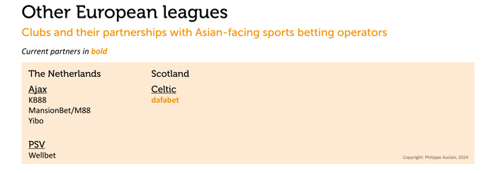 The list of European clubs, leagues, and national teams that have entered into partnerships and sponsorships with unregulated, Asian-facing gambling operators is long.