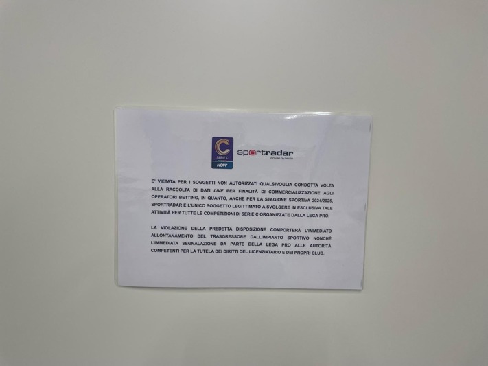 Sportradar holds the data rights to Serie C exclusively. Clubs at this level are encouraged to help SportRadar protect the exclusivity - and value - of the data by rejecting applications for media accreditation by foreign media. In some cases, journalists are even asked to provide passport details, yet they are still rejected due to fears that some are collecting and transmitting match data for betting that breaks the exclusivity of Sportradar’s deal.