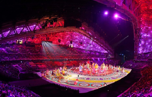 In the 2014 OC’s final and perhaps most spectacular scene, the Olympic Stadium was transformed into a “galaxy, where giant Olympic Gods reign and watch over us from the night sky”, as stated in the official media guide.