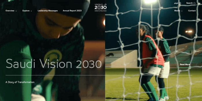 Football’s centrality to Saudi Arabia’s Vision 2030 is illustrated by this screenshot from their homepage.