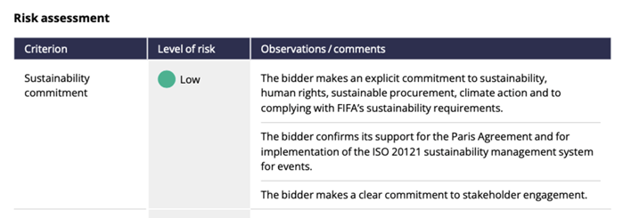 FIFA’s Bid Evaluation Report ranked Saudi Arabia at low risk of breaching sustainability commitments.