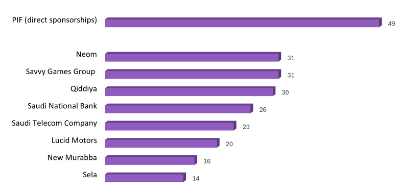 PIF serves as the driving force behind Saudi Arabia’s sports strategy. While PIF itself sponsors a wide range of sports, it has also leveraged its many subsidiaries to amplify its influence. Below is an overview of some of PIF's most significant subsidiaries and the number of sponsorships they hold in the world of sports.